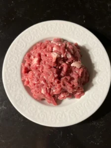 3. Kuzu eti küçük küçük (satırla yoksa bıçak yardımıyla) doğranır.